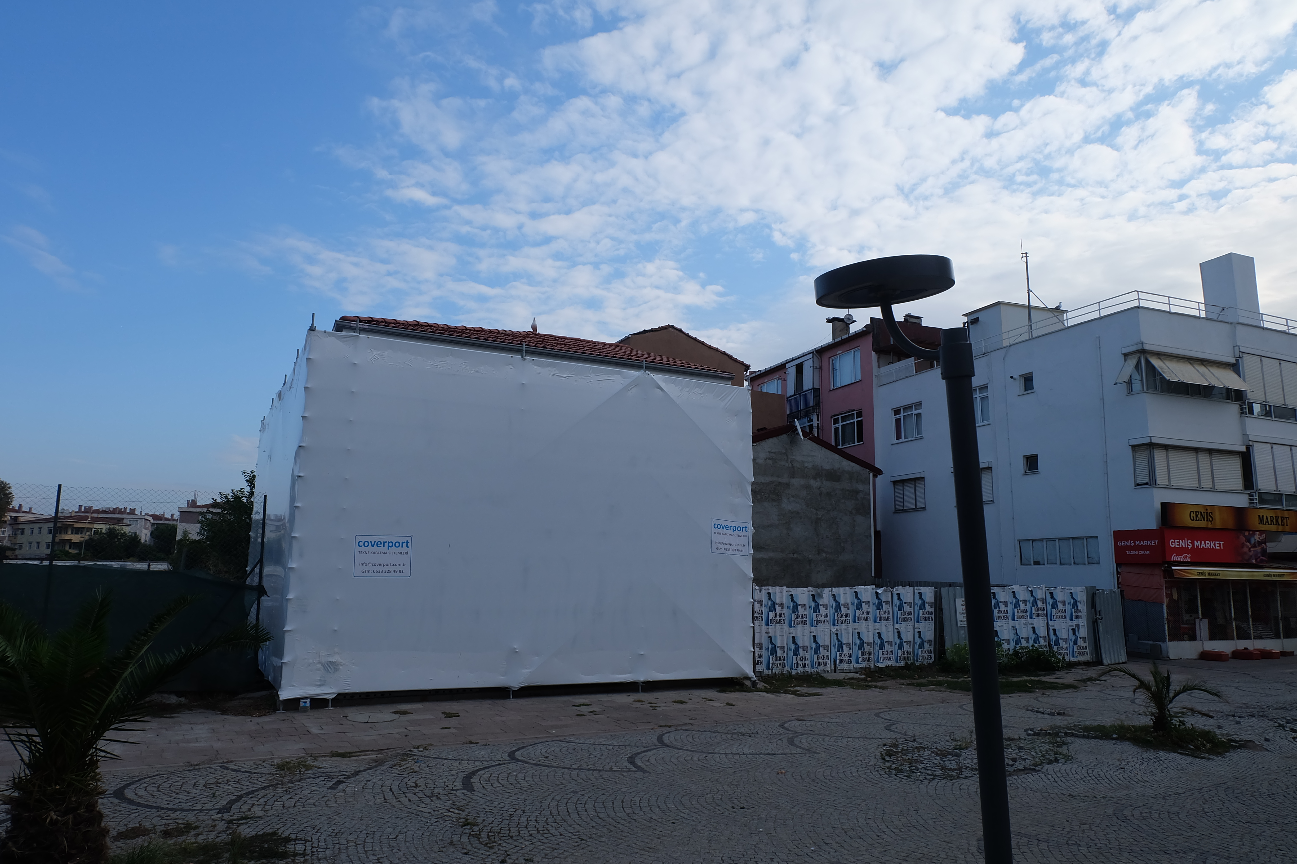 Kapalı alan oluşturulması : Shrink wrap iskele sistemleriyle beraber uygulandığında; inşaat alanlarının, yeni inşa ve bakım onarım teknelerinin tamamen veya kısmen kapatılmasına olanak verir. İskelenin shrink wrap ile kaplanması kaplanan alanı dış etkilerden(yağmur, kar, toz ve rüzgar), çevredekileri de sizin verebileceğiniz zararlardan(sprey boya, toz, raspa) korur.